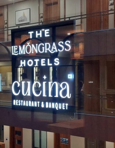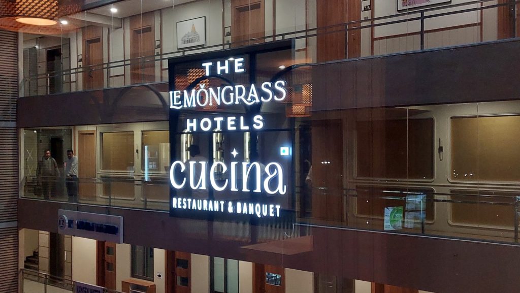 Restaurant Cucina Restaurant & Lemongrass Hotels Cucina Restaurant brings its etiquette experience in the heartland of Gujarat, Gandhinagar. Lemon Grass Hotels has 23 exquisitely designed guest rooms that showcase designs inspired by the Indian script. This experience is created through the integration of the letters, their form, force & into the detailing design of space across the hotel. The hotel is very well connected to the city’s most important business and entertainment hubs.
